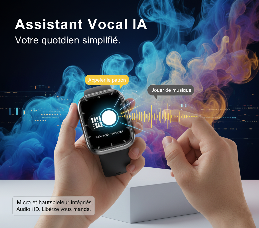 Pilotez votre quotidien au son de votre voix ! Grâce à l'assistant IA, passez vos appels, lancez vos playlists préférées ou obtenez des infos instantanées en un seul mot. Une technologie intuitive qui simplifie chaque geste et vous fait dire adieu aux tâches fastidieuses. La liberté au poignet.