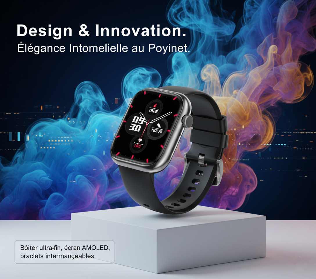 Découvrez l'élégance ultime avec ce boîtier ultra-fin. Son écran AMOLED éclatant offre une clarté totale, tandis que les bracelets interchangeables s'adaptent à chaque moment. Un style unique qui vous ressemble, alliant confort et technologie.